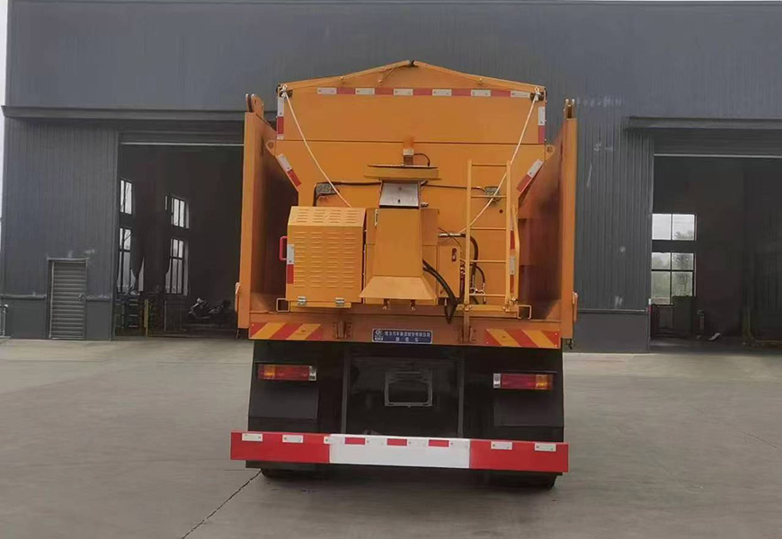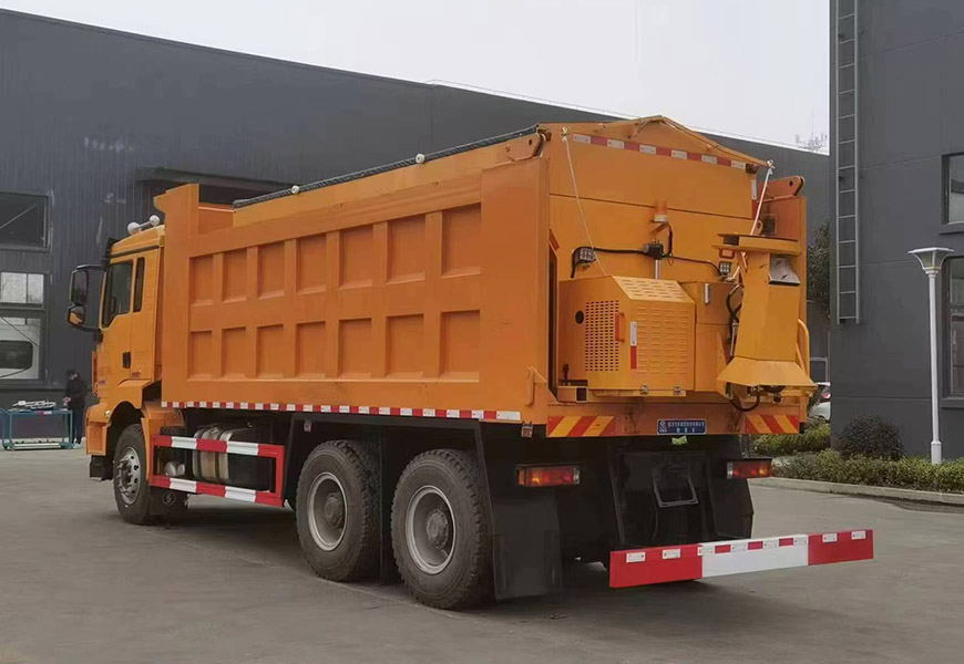 上裝配置 | 箱體采用優(yōu)質(zhì)碳鋼板,標(biāo)配10立方撒布機(jī)也可以選裝12立方,不銹鋼撒布機(jī)甩盤,撒布盤直徑550mm,撒布機(jī)采用 V 型料倉,結(jié)構(gòu)簡單可靠,使融雪劑自動(dòng)落料,出料完全,無殘留,箭頭燈、篷布、過濾網(wǎng)、后爬梯。加裝3.5米雪鏟,可切換3.5米除雪滾刷(滾刷可選自帶動(dòng)力或者液壓取力)。 |